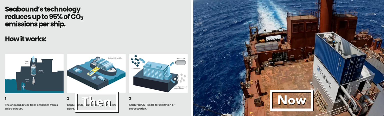 Seabound: Also capturing carbon emissions, but for cargo ships. During the batch they were able to get ship owners — many of whom are facing increasingly strict emissions regulations — to sign key LOIs; shortly thereafter, they ran their first pilot program on an actual ship.